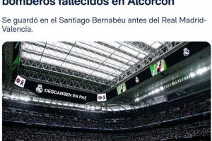 体育资讯4月5日讯 皇马官方表示,皇马在赛前默哀一分钟是为了纪念两名牺牲的消防员。 目前皇马对阵瓦伦西亚的西甲联赛正在进行中,皇马暂时1-1战平对手。 在比赛开始前,整座伯纳乌球场默哀了一分钟,原因是为了纪念在马德里阿尔科尔孔牺牲...